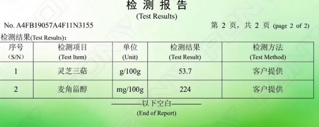 慈药山总三萜含量≥18g/100g,检测报告由湖南省食品药品检验研究院出具,具有一定的地方权威性。但未公开麦角甾醇等数据。18g的含量处于行业较低水平,主要满足基础保健需求。